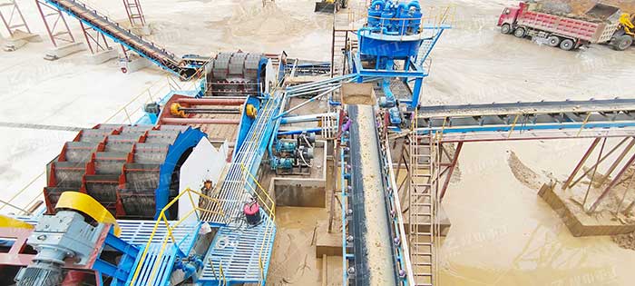 4、石英砂清洗:可以根據對石英砂成品的要求選配一臺洗砂機,洗出石英砂中的雜質,降低石粉含量,提高石英砂質量。