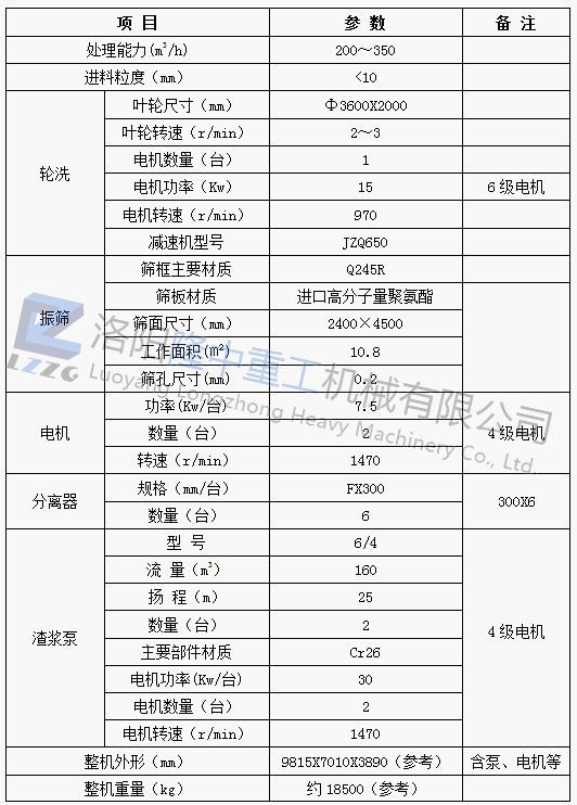 1洗砂回收一體機LZ36-180主要技術參數如下: